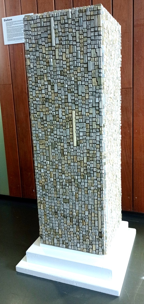 Dadave – La tour aux caractères (Tour de Babel) – Accumulation de touches de claviers – 40x40x120 cm